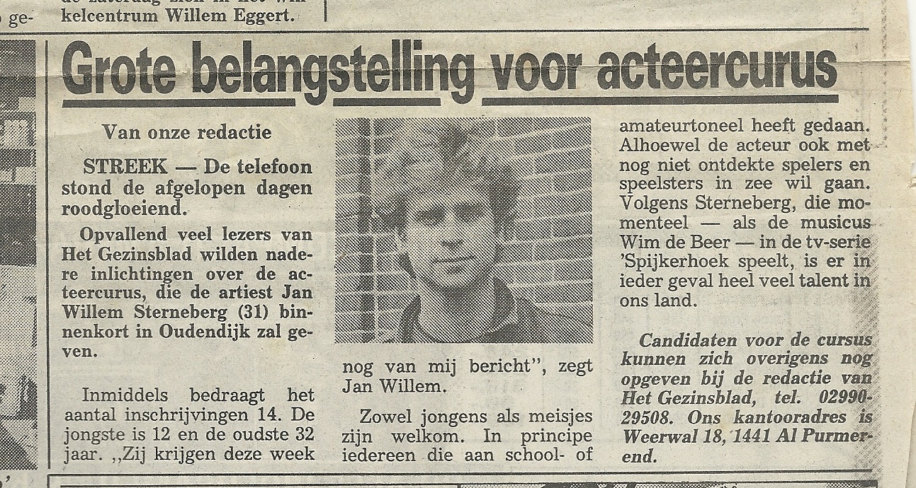 I felt I was up an running as an actor. I soon got an invitation from Hans Kemna to do an audition in Paris for a movie called “The Name of the Rose” . I declined. Why? I was inexperienced and without any real professional guidance. (Not saying that I would have landed the job though :-)) Not much later I attached myself to Harry Klooster’s Zwollywood Management. Harry helped me get my acting career on track.